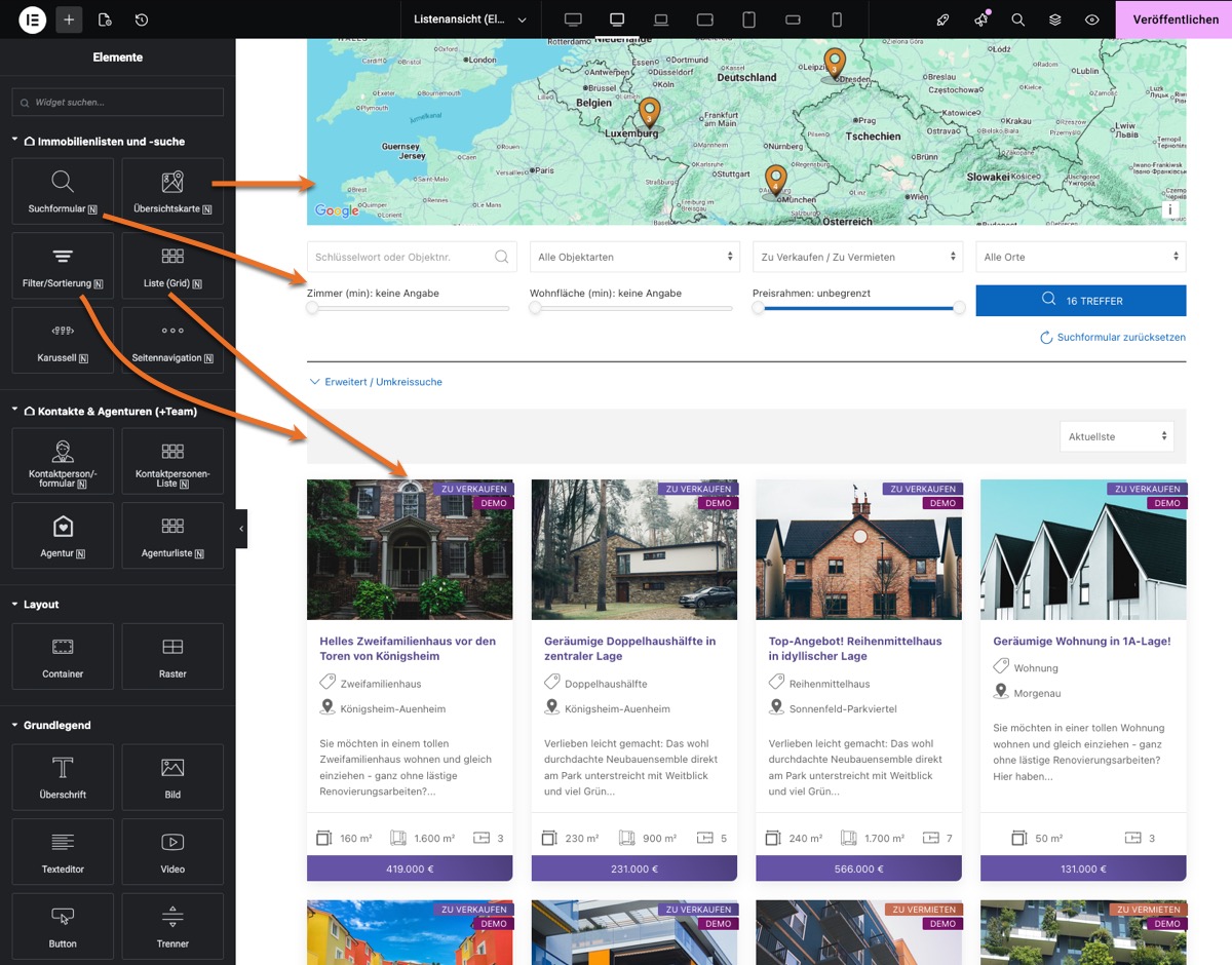 • 35+ Widgets für Immobilien-Listen und Detailseiten